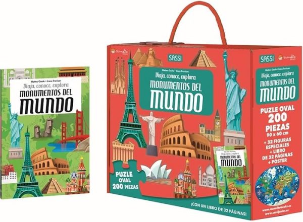 A lo largo de milenios, el hombre ha construido monumentos de extraordinaria belleza, que se han convertido en verdaderos símbolos de naciones y civilizaciones conocidas y admiradas en todo el mundo. Torres, palacios, anfiteatros, antiguas pirámides y modernos rascacielos cuentan una larguísima historia y son testigos perennes del ingenio humano. Un nuevo título de la exitosa serie Viajar, conocer, explorar que ilustra muchos de los monumentos reconocidos por la UNESCO como Patrimonio de la Humanidad, estimulando el aprendizaje de la geografía gracias a las pegatinas del puzzle.
